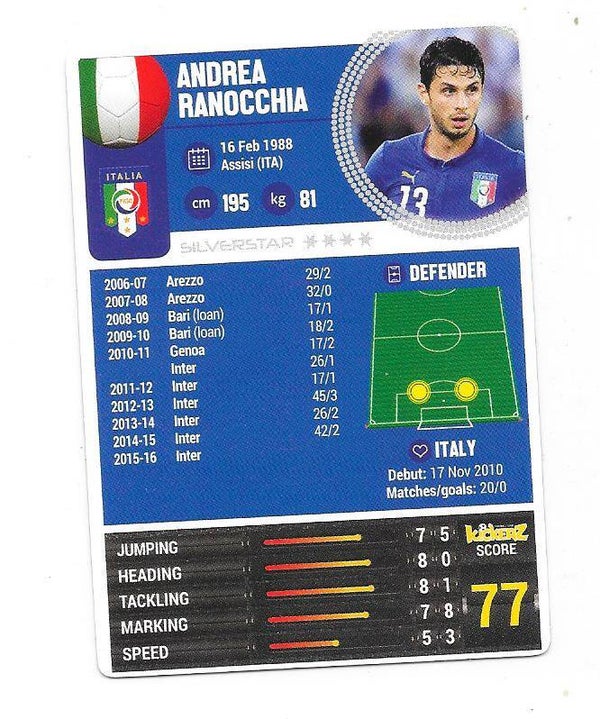 2015-16 Swedish Kickerz Silverstar # Andrea Ranocchia Inter Milan
