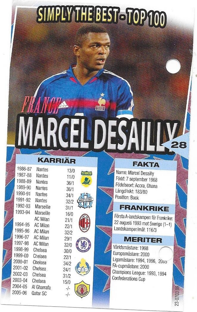 2005-06 Swedish Boing Simply the Best #28 Marcel Desailly Chelsea , France