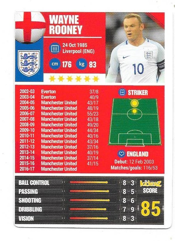 2016-17 Swedish Kickerz Goldstar # Wayne Roone , Manchester United , England
