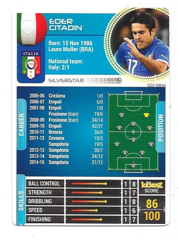 2014-15 Swedish Kickerz Silverstar # Eder Citadin Sampdoria , Italia
