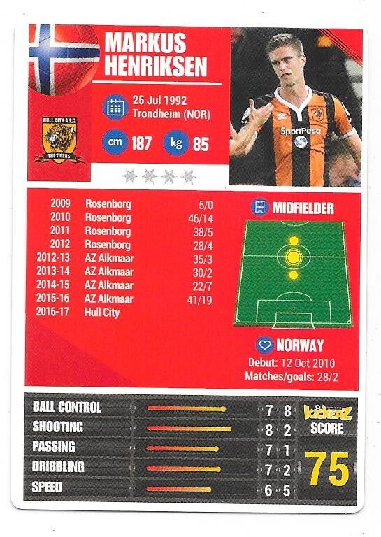 2016-17 Swedish Kickerz Silverstar # Markus Henriksen Denmark , Hull City