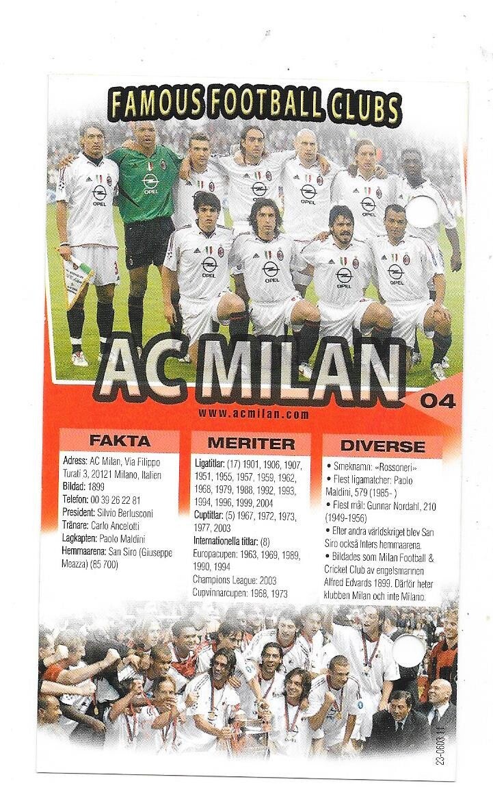 2005-06 Swedish Boing Most Famous Clubs #04 AC Milan , Italia