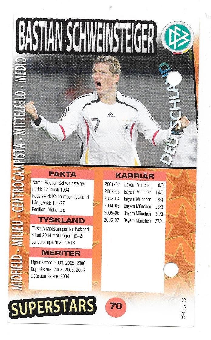 2006-07 Swedish Boing Superstars #70 Bastian Schweinsteiger FC Bayern München , Germany