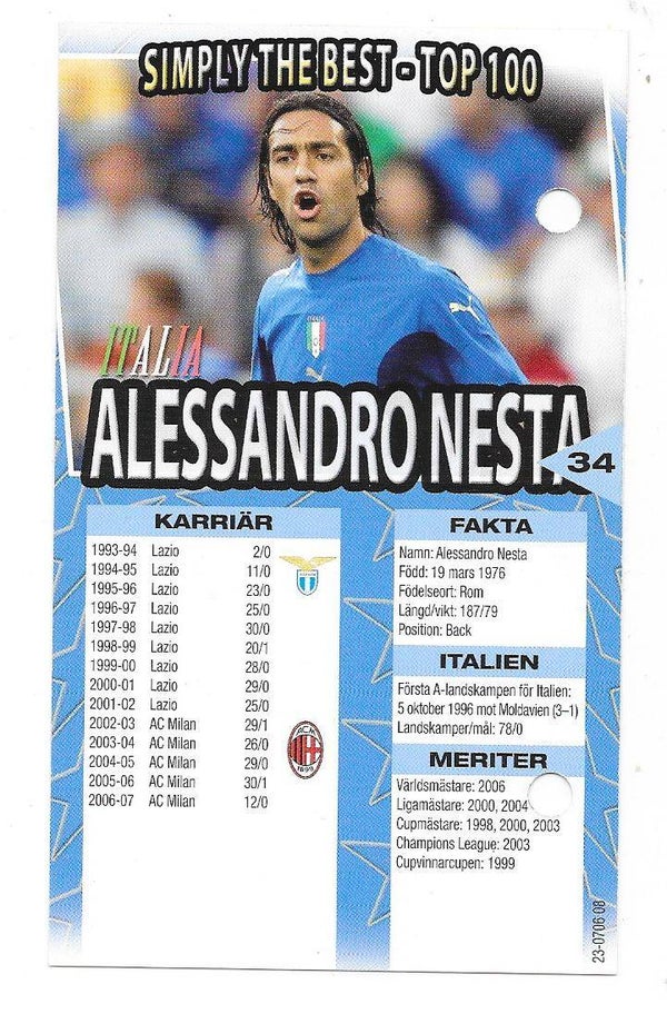 2006-07 Swedish Boing Simply The Best #34 Alessandro Nesta AC Milan , Italia