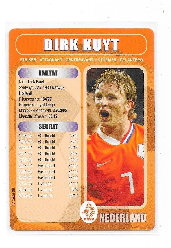 2008-09 Finnish Boing #123 Dirk Kuyt Liverpool , Netherlands