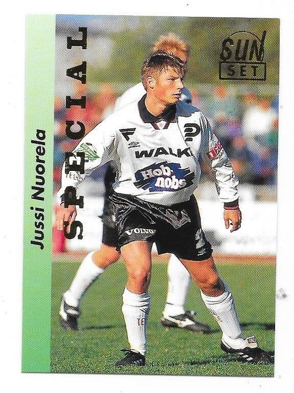 1994 Finnish Sunset Special GOLD #3 Jussi Nuorela FC Haka , Fortuna Düsseldorf , FC Groningen , FC Eindhoven , PSV Eindhoven , Malmö FF , FC Vaduz , Silkeborg IF , FC Zwolle , nr-nmt