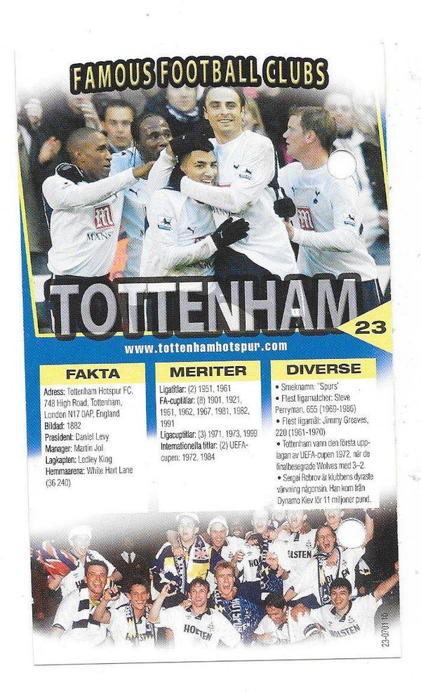 2005-06 Swedish Boing Most Famous Clubs #23 Tottenham Hotspur , England