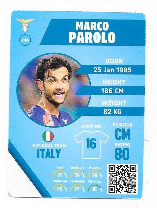 2017-18 Swedish Kickerz Silverstar #106 Marco Parolo Lazio , Italia , Como , Pistoiese , Foligno , verona , Cesena , Parma , nr-nmt