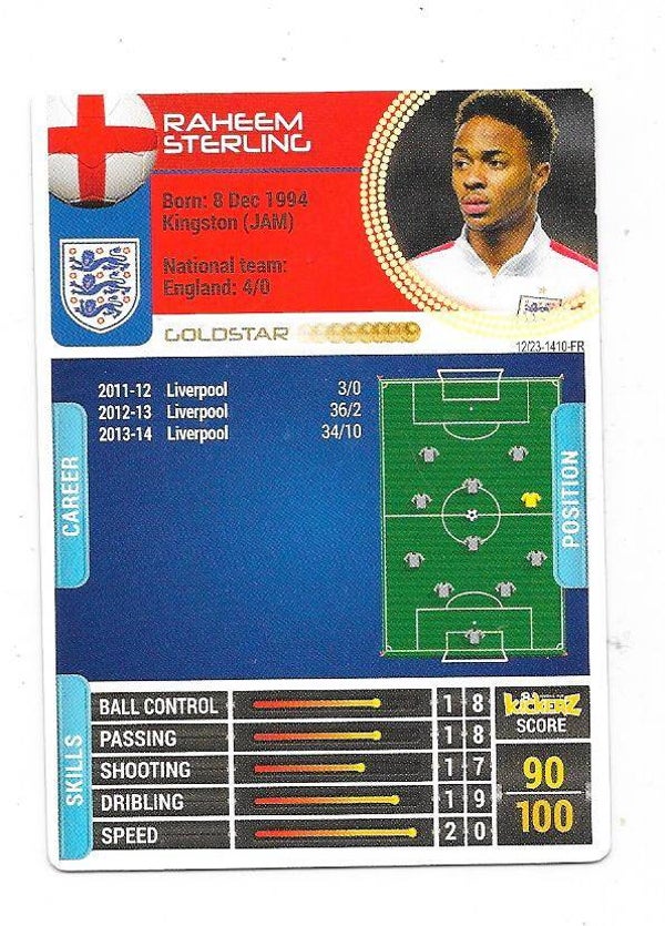 2013-14 Swedish Kickerz Goldstar # Raheem Sterling Liverpool , England , Manchester City , Arsenal , nr-nmt