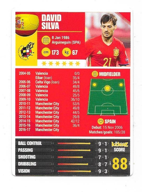 2016-17 Swedish Kickerz Goldstar # David Silva Manchester City , Spain , Valencia , Eibar , Celta Vigo , nr-nmt