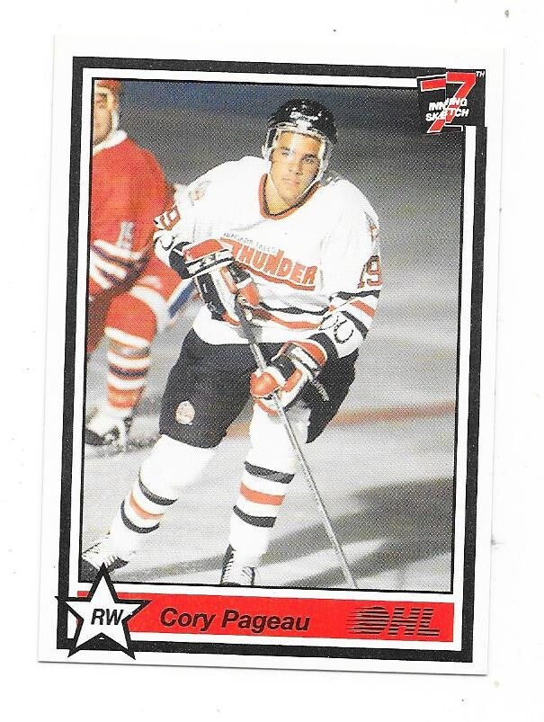 1989-90 7 inn Sketch OHL #268 Cory Pageau Niagara Falls Thunder , Wilfrid Laurier University , nr-nmt