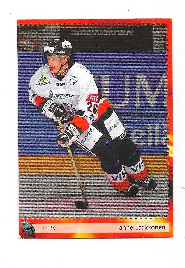 2002-03 Finnish Cardset #204 Janne Laakkonen HPK , Peterborough Phantoms , IF Sundsvall Hockey , Coventry Blaze , Amiens , Fife Flyers , UTE , condition , there is minor wear on left corner, not bad very good-good.
