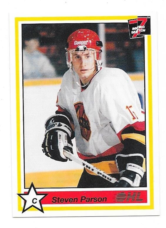 1989-90 7th Inn Sketch OHL #291 Steven Parson Owen Sound Platers , South Carolina Stingrays
