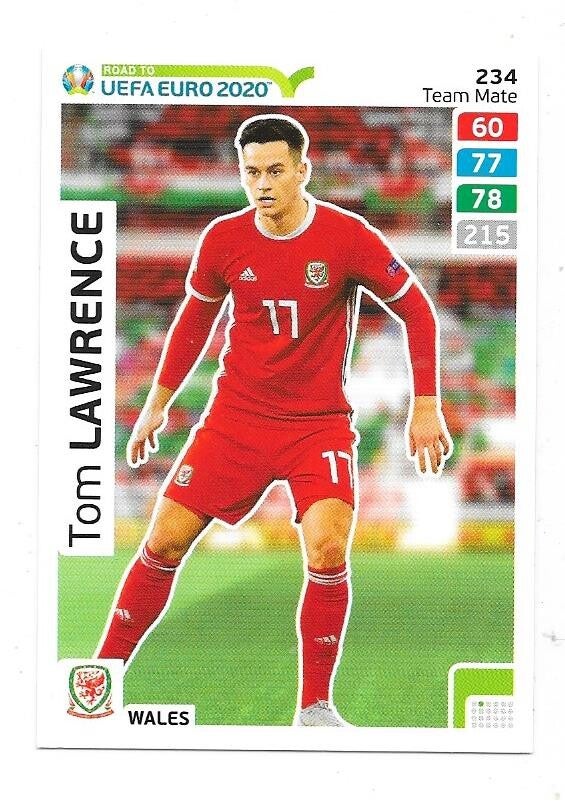 2020 Panini Adrenalyn XL Road to UEFA EURO 2020 #234 Tom Lawrence , Wales , Manchester United , Carlisle United , Yeowill Town , Leicester City , Blackburn Rovers , Ipswich Town , Derby County , Glasgow Rangers , Perth Glory , football. nr-nmt