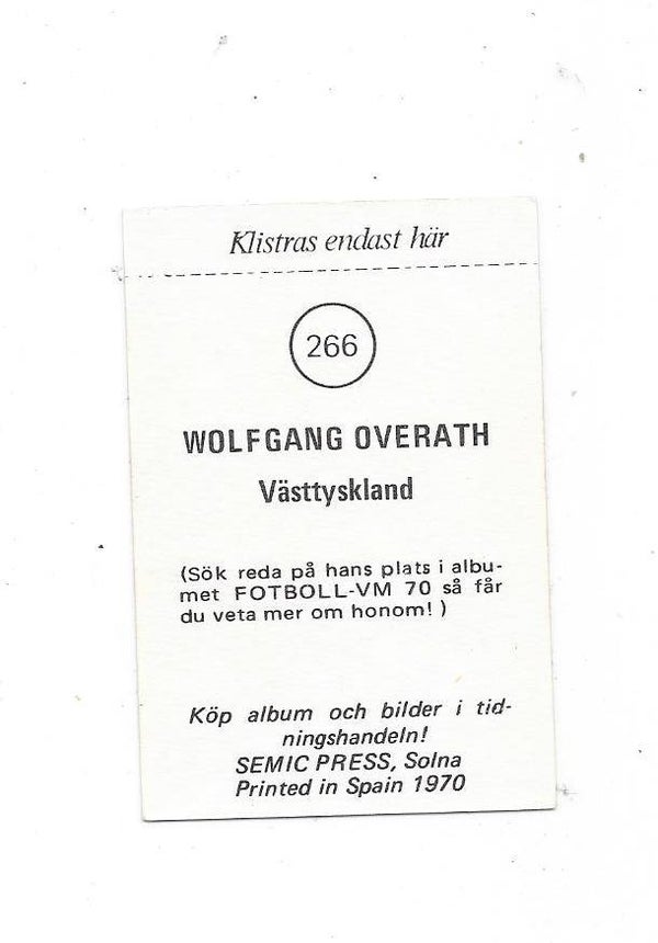 1970 Swedish Semic Football World Cup #266 Wolfgang Overat h , West Germany , 1. FC Köln , condition nr-nmt