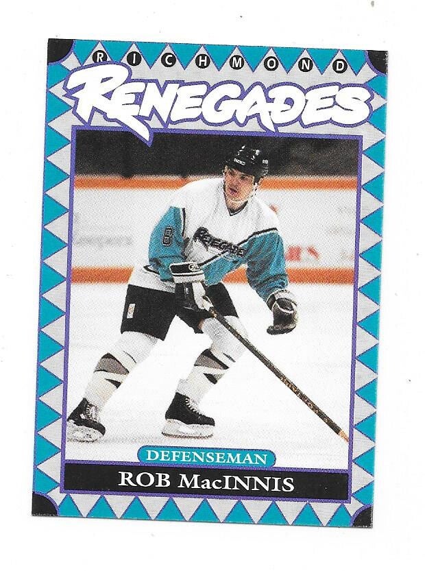 1993-94 Richmond Renegades TeamIssued (ECHL) #7 Rob MacInnis , Kitchener Rangers , ice hockey , nr-nmt.