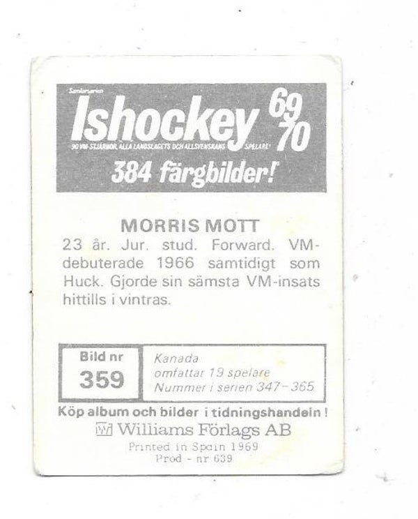 1969-70 Swedish Semic Ice Hockey #359 Morris Mott , Canada , Winnipeg Jets , California Golden Seals , rare ice hockey card , condition very good - good.
