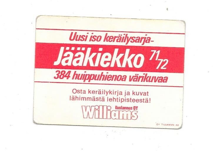 1971-72 Finnish Williams Jääkiekko #26 Ivan Hlinka , Czechoslovakia , TJ Litvínov , Vancouver Canucks , EV Zug , rare ice hockey card , condition very good-good. Please see the pictures.