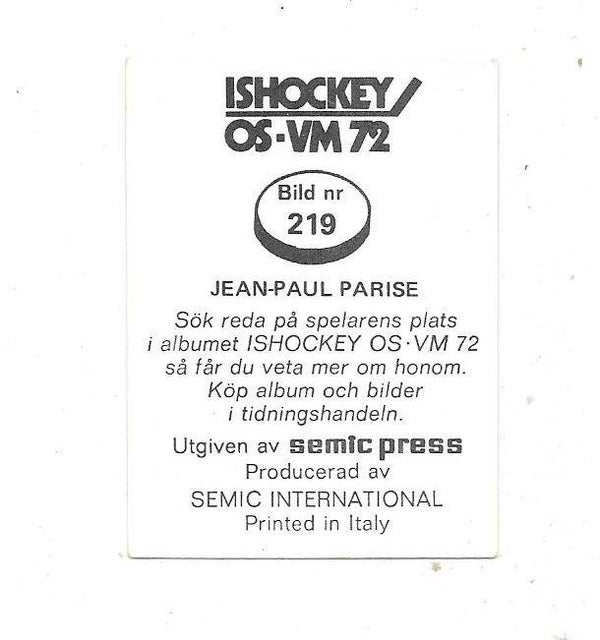 1972 Swedish Semic Ice Hockey OG & WC 72 #218 Dean Prentice , Minnesota North Stars